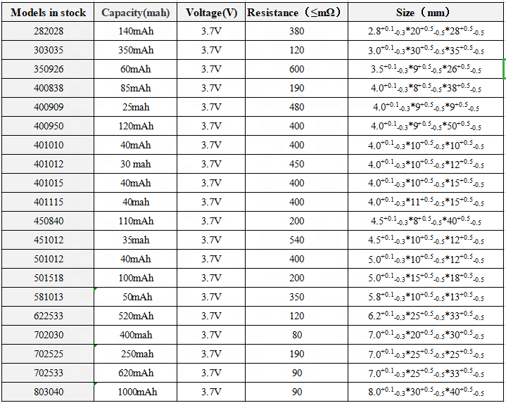 Име на продукта | 581013 3.7V 50mAh полимерна литиева батерия | Забележка | |